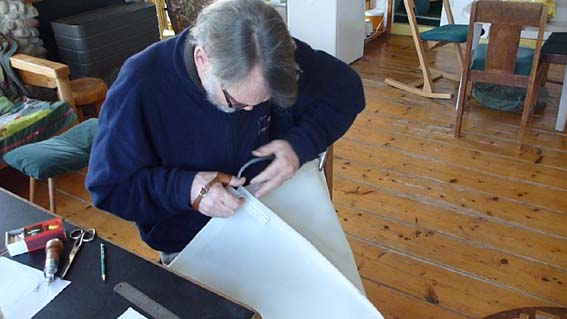 Ronald monteert de blokken om de zwaarden te hijsen.